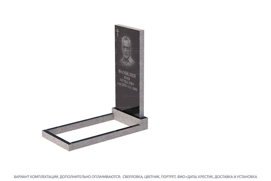 - Доступен в разных комплектациях: с цветниками, с надгробными плитами и т.д.